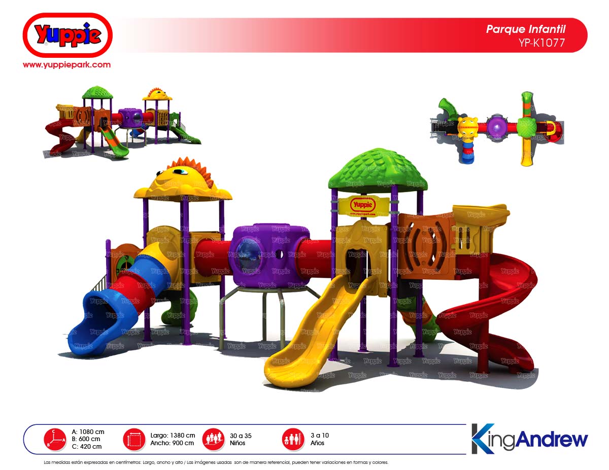 Yuppie Park a reunidos los mejores parques infantiles del mundo para adaptarse a cualquier espacio, gustos o presupuestos. Proporcionamos los parques infantiles de más alta calidad y seguridad del mercado, asegurando un diseño de estructuras que cumple con todas las directrices y estándares internacionales actualmente.